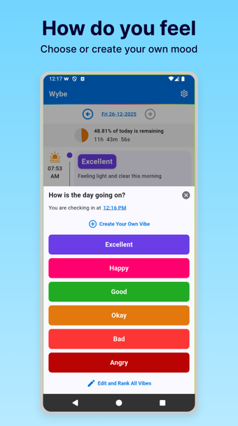 Wybe: Mood Tracker & Journal เป็นแอปพลิเคชันการผลิตฟรีที่ออกแบบมาเพื่อ ติดตามอารมณ์ของคุณ ซึ่งรวมถึงการบันทึกความรู้สึกของคุณและสะท้อนถึงรูปแบบอารมณ์ของคุณเพื่อสนับสนุน สุขภาพทางอารมณ์. แอปนี้ส่งเสริมการดูแลตัวเองโดยช่วยให้คุณเข้าใจการขึ้นและลงทางอารมณ์ของคุณได้ดีขึ้น.