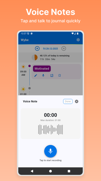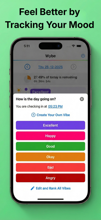 Wybe: Mood Tracker & Journal เป็นแอปพลิเคชันไลฟ์สไตล์ฟรีที่ออกแบบมาเพื่อ ติดตามอารมณ์ของคุณ ซึ่งรวมถึงการบันทึกความรู้สึกของคุณและสะท้อนถึงรูปแบบอารมณ์ของคุณเพื่อสนับสนุน สุขภาพทางอารมณ์. แอปนี้ส่งเสริมการดูแลตนเองโดยช่วยให้คุณเข้าใจการขึ้นและลงทางอารมณ์ของคุณได้ดีขึ้น.